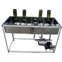 Doble cubeta inox 4 canelles (2 + 2) amb 1 bomba per NETEJA INTERIOR d'ampolles o garrafes. Possibilitat de muntatge de cubetes amb sistema de recuperació d'aigua. Cubeta única per rentat i esbandida amb sistema polsador. Fabriquem diferents models en funció de les necessitats de neteja i tipus de recipient a...