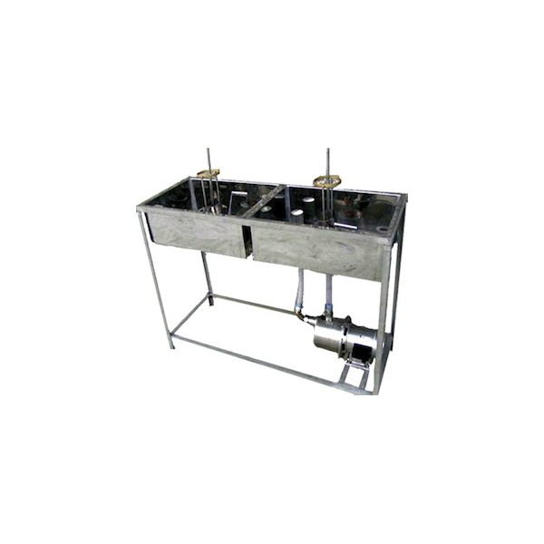 Doble cubeta Inox amb dues canelles (1 + 1) amb 1 bomba per NETEJA INTERIOR d'ampolles o garrafes.