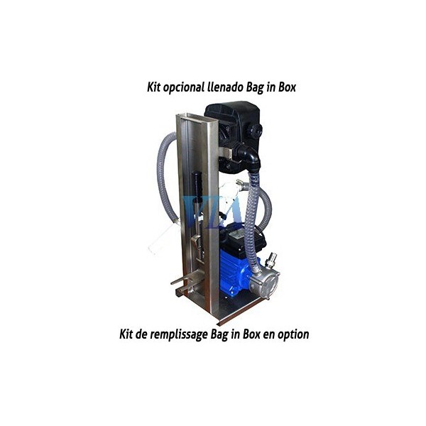 Dispensador amb l'estructura d'acer inoxidable, bomba centrífuga d'acer inoxidable, mesurador digital i pistola d'ompliment de plàstic. Ideal per omplir tota mena de recipients i en particular bombones, dames, etc. Accessoris disponibles: