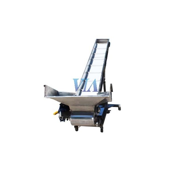 In. Via presenta el model revolucionari, novetat mundial, patentat imprescindible en qualsevol celler per la seva gran versatilitat, gràcies a el joc de peus telescòpics augmenten l'altura de descàrrega, permeten baixar el nivell de la tremuja fins i tot per sota de premses pneumàtiques, i com a opció final per aconseguir el màxim rendiment de la màquina i aprofitament de la inversió, disposa de l'elevació que permet a la cinta convertir-se en taula de selecció de banda.