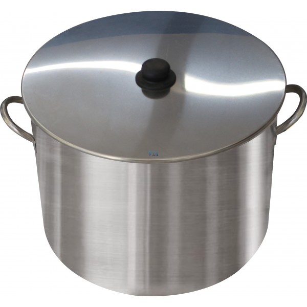 Una olla d'acer inoxidable 50 litres (caldera mescladora) completa amb una aixeta d'acer inoxidable de 3/4”, un termòmetre professional analògic d'acer inoxidable amb protecció, una tapa d'acer inoxidable amb un pom i còmodes mànecs d'acer inoxidable. alt gruix de l'olla ajuda a mantenir les temperatures ideals Dimensions cm ∅ 37x37.5h.