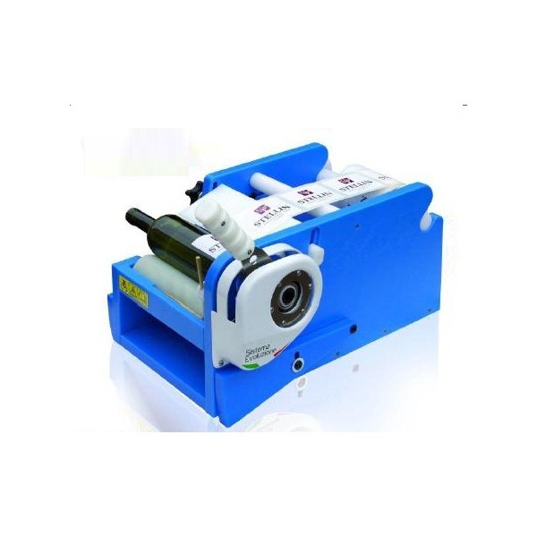 Funciona posant una junta de goma al corró, perquè la zona d'etiquetar de l'ampolla quedi paral·lela a la guia de sortida d'etiquetes.