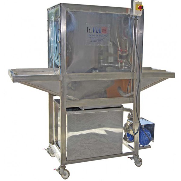Introducció de caixes i pas per túnel de rentat de forma manual.