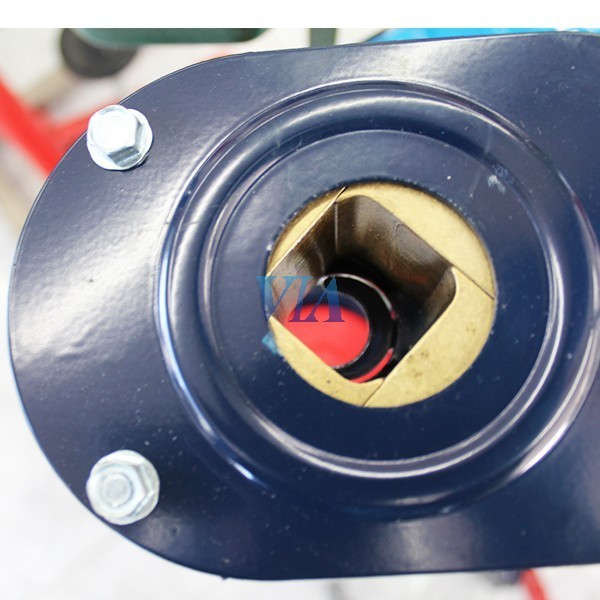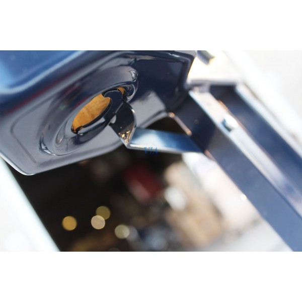 Tapadora manual amb mordasses de llautó o llautó cromat disposa d'un dispositiu amb una palanca o dispositiu vermell de plàstic i moll per facilitar l'extracció del tap en forma de xampinyó a l'exterior de l'ampolla.