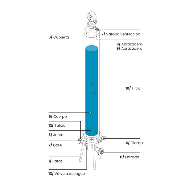 Ideal for linear filtration in semi-sterile and sterile stages. Prefiltration by means of a filter press is recommended to avoid the clogging of the cartridges.