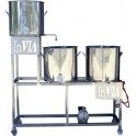 EQUIPMENT OF THREE POTS IN TWO LEVELS WORK BY GRAVITY. Standard manufacturing with 50 to 400 liter pots. On request we manufacture equipment of greater capacity. VERSION WITH THREE POTS OF 150 L. Mounted on stainless steel bench with wheels. Useful for macerating, grain washing and cooking with total comfort....