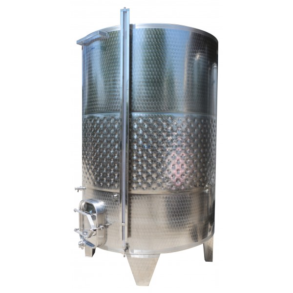 Tanks with a flat sloping bottom 5% very suitable for vinification with skins or skins and storage. Unlike the models with a conical bottom, once the fermentation and devining are finished, the manhole and the sloping bottom up to the door make it easier to extract the skins. They are also equipped with an internal strainer grid for pumping over. Automated self-emptying tanks with propeller and conical bottoms with guillotine doors (hydraulic or pneumatic) can be manufactured on this line.