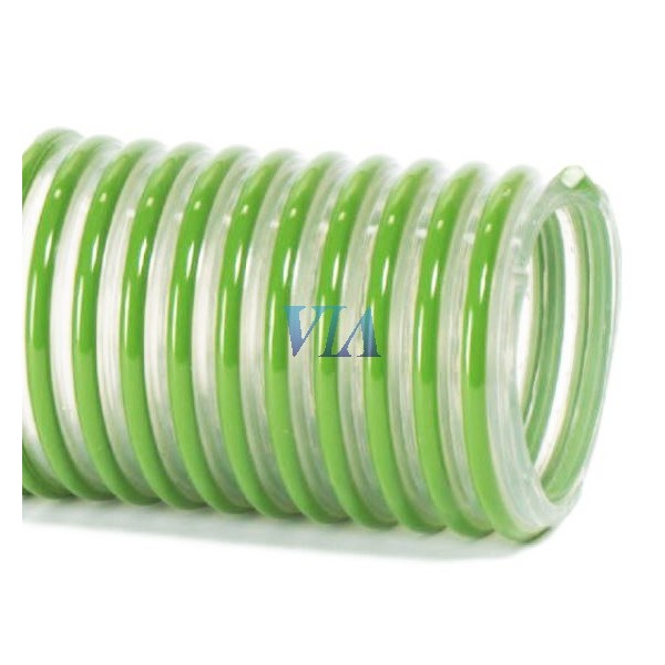 Phthalate-free flexible PVC pipe reinforced with a rigid anti-shock PVC spiral and with an internal layer of PU polyester base, manufactured according to the UNE EN ISO 3994 standard.