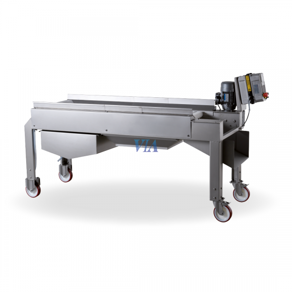 First section suitable for the drainage of liquid, for the collection of grape seeds and small vegetable parts with the possibility of a liquid recovery tank with removable solid interception grid. Final part with profiled rollers, able to separate the grains from the beetles, petiole and leaves.