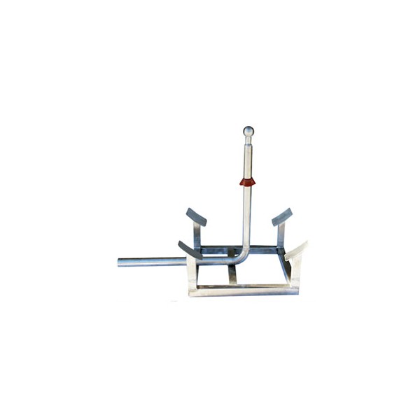 Stainless steel base with perforated ball-end spout for interior cleaning of barrels, through pump connection.