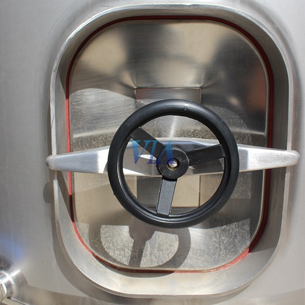 DETAIL * Top: 45º conical dome centered, 400mm diameter centered access manhole with gasket, cover, flywheel and opening system with arm and rotating bolt. Double acting safety valve (pressure / depression) in 304l stainless steel. * Cylinder: complete level with 304l stainless steel tap with gas hose with plastic hose or methacrylate tube, with calibrated profile of general capacity. Nameplate and identification. Supports stairs from 3,000l. Tap takes samples in stainless steel. Lower mouth in model M diameter 400mm model D rectangular with external opening, complete with gasket, closing flywheel and bolts. 304 stainless steel butterfly valve on the NW 50 male outlet at the bottom.