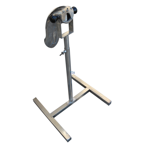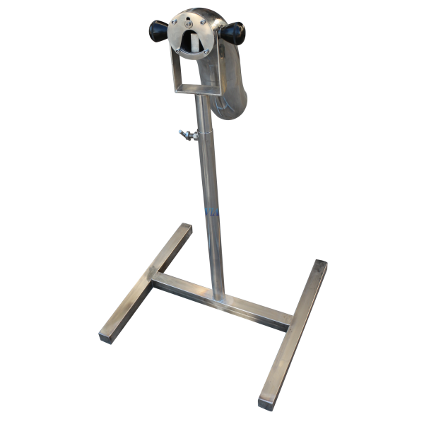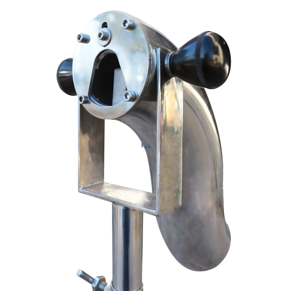 Moving stainless steel head to determine the optimum degree of inclination for the disgorging process.