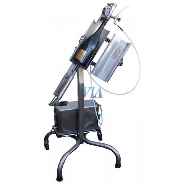 Manual isobaric filler.Transfer machine, dosage after disgorging, isobaric filler for sparkling wine.Possibility of a depressor motor to create a vacuum in the bottle.