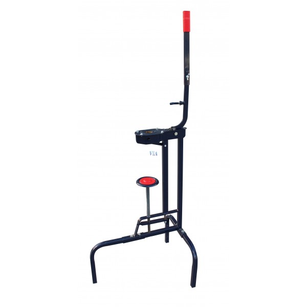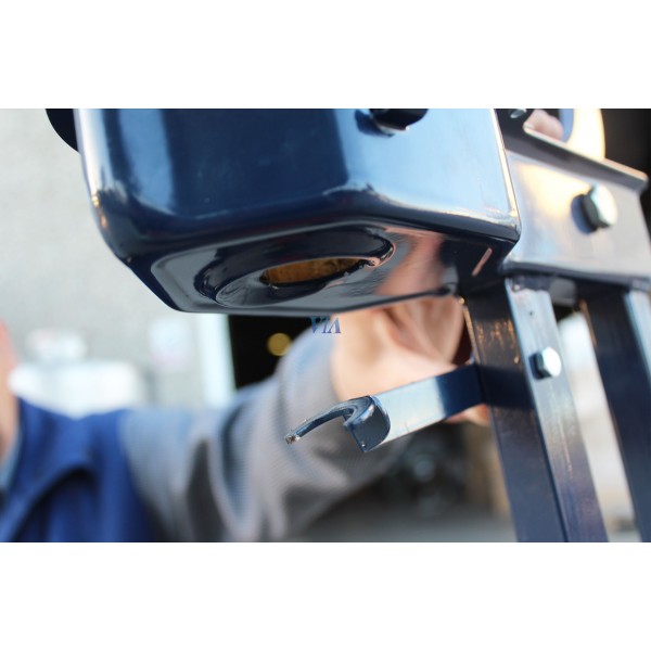 Manual corker with brass or chrome-plated brass jaws has a device with a lever or red plastic device and spring to facilitate the removal of the mushroom-shaped cap from the outside of the bottle.