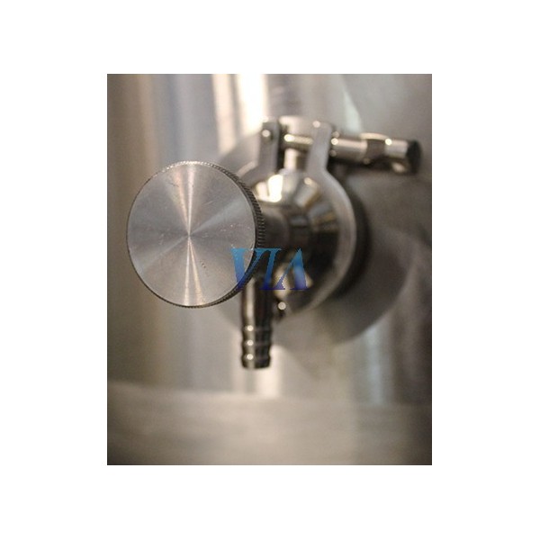 - Double dimple sheet cooling jacket welded on trunk and lower cone. Pressure gauge, mechanical pressure regulating valve, relief valve with triclamp connection, sampling tap.