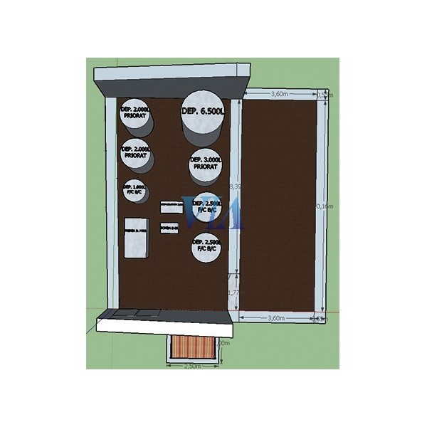 - Deposit 5,000 Ltrs. Standar flat bottom inclined 5%. Diameter 1.700mm and Height 3.078mm.