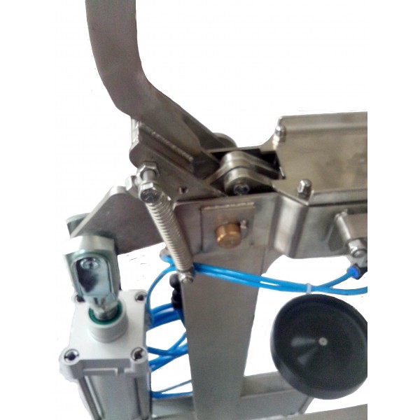 Semi-automatic capping machine with pneumatic piston as an aid to capping.