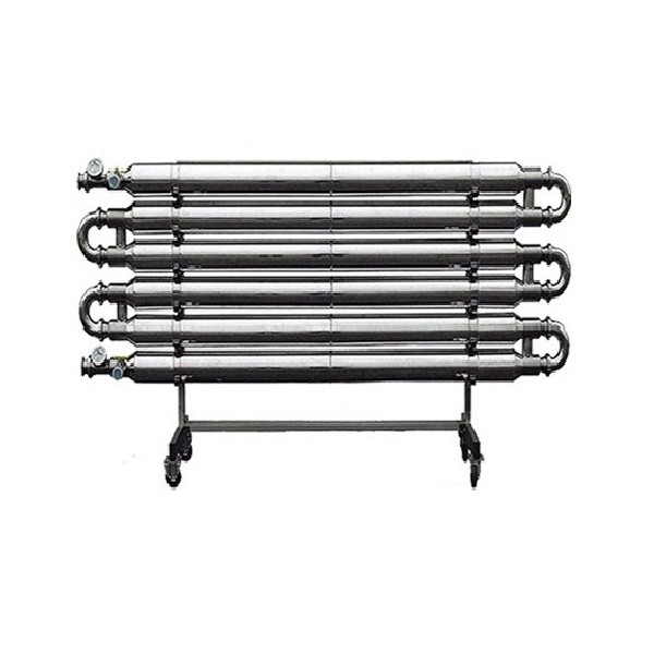Customized exchangers, made up of two stainless steel tubes, where the heat exchange takes place against the current between the product (which circulates through the inner tube) and the cooling fluid (which circulates through the outer tube).