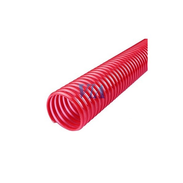 Hose manufactured by extrusion of vinyl compounds, according to UNE standard in ISO 3994 transparent violet glass color with red spiral.