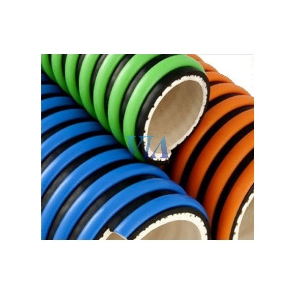 Hose of high quality, formed by a layer of EPDM. White, with textile reinforcement and another layer of EPDM. All of it covered externally by a polyethylene spiral.