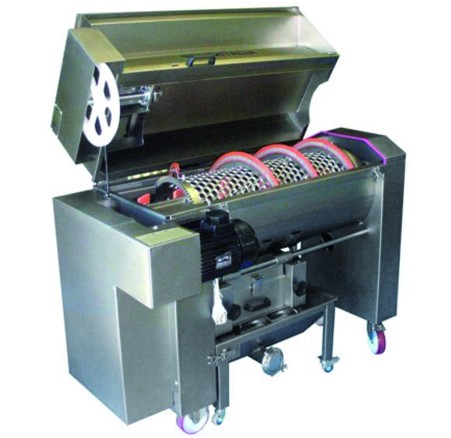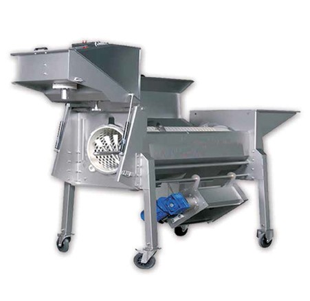 Despalilladora - estrujadora con cinta / mesa de selección Innovador sistema que permite la selección de la uva al tiempo de ser transportada hacia la despalilladora - estrujadora LA CINTA TRANSPORTADORA DEJA CAER LAS UVAS DIRECTAMENTE EN EL TAMBOR DE DESPALILLADO prescindiendo del tornillo sinfín de carga y...