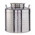 Se utiliza indistintamente para el almacenamiento en el caso del vino, cerveza, aceite... o la fermentación para cerveza y vino... y para otros productos consultar. Cantaras de acero inoxidable 18/10 con tapa inox de 200 mm roscada, fondoplano, costura plegada. Salida inferior con un tapón roscado para acoplar grifo...