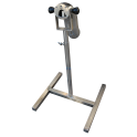 Pedestal para el degüelle de botellas de vinos espumosos en vertical. Guía 90ºC de flujo. Construido en su totalidad de acero inoxidable. Pie regulable en altura. Cabeza Inox móvil para determinar el grado de inclinación óptimo para el proceso de degüelle.