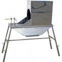 Máquina construida totalmente en acero inoxidable. Soporte inox para descanso de la botella de cava, facilitando de esta manera el degüelle y una limpia extracción de los posos. Cabina para realizar el degüelle a mano.