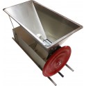 Estrujadora - despalilladora de tracción manual. Estrujadora y despalilladora (primero estruja y después despalilla). Acero INOX, accionamiento manual con volante. Rodillos de Aluminio 220 mm, Tambor de despalillado inox . TOLVA de 900 x 500. Producción 700 kg / h.