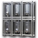 Depósitos de acero Inox AISI 304 laminado en frío, acabado externo satinado y acabado interno pulido alimentario. Fondos moldeados en frío con perfil optimizado espesor mín. 1,5 mm. Proceso de soldadura TIG automatizado. Limpieza mecánica de las soldaduras. Jaula protectora de acero galvanizado por baño. Alojamiento...
