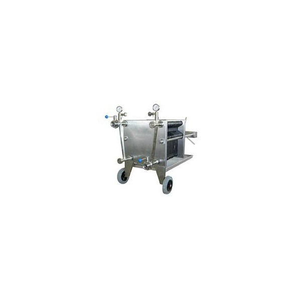 Cierre manual de tornillo, 2 válvulas de mariposa, 2 manómetros, 2 mirillas, bandeja de recogida de goteos en inox, posibilidad de vaporizar y esterilizar.