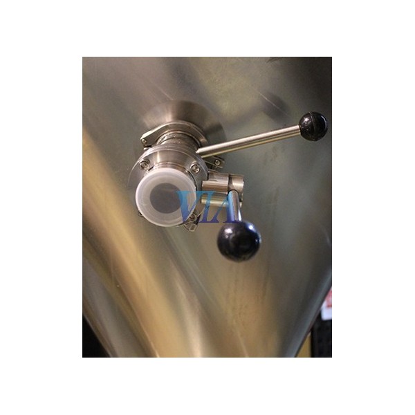 - Doble camisa de refrigeración de chapa con hoyuelos soldada en tronco y cono inferior. Manómetro de presión, válvula reguladora de presión mecánica, válvula de alivio con conexión triclamp, grifo saca-muestras.