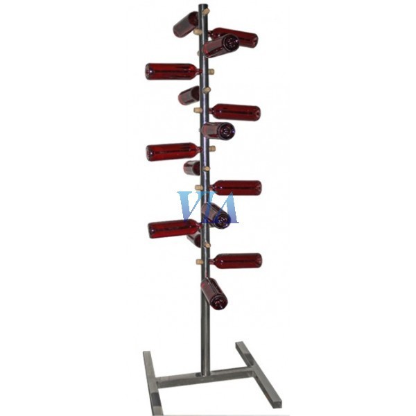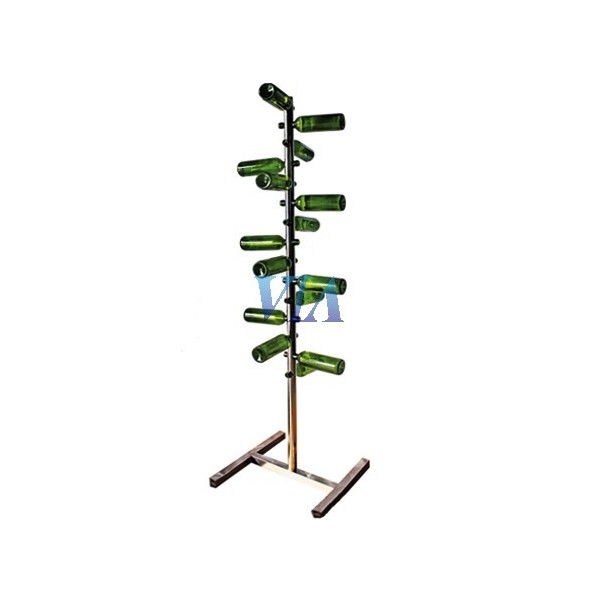 Botellero Inox de pié con capacidad para 15 botellas, construido con tubería Inox pulida, con base de soporte inferior Inox.