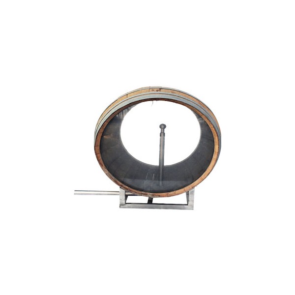 Base inox con caño terminado en bola perforada para limpieza interior de barricas, atraves de conexión a bomba.