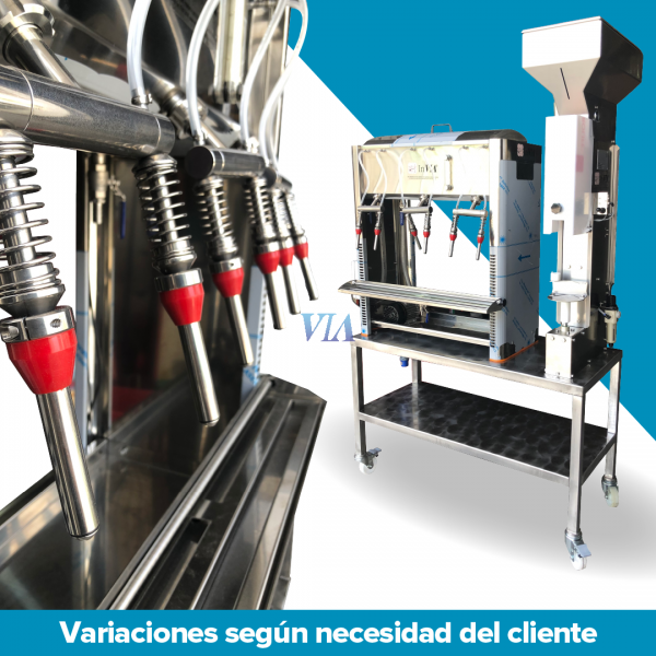 Mesa Inox doble bandeja (largo, ancho, alto) 3000 x 1250 x 800 mm , montada sobre ruedas con llenadora 4 años con bomba y sonda de máximo - mínimo + tapadora corchos de accionamiento neumático con dispensador automático de tapones.