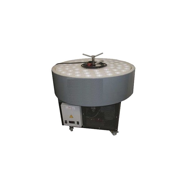 - Disco rotatorio de polietileno de alta densidad molecular (EP40) que descansa sobre un soporte de apoyo en acero inoxidable