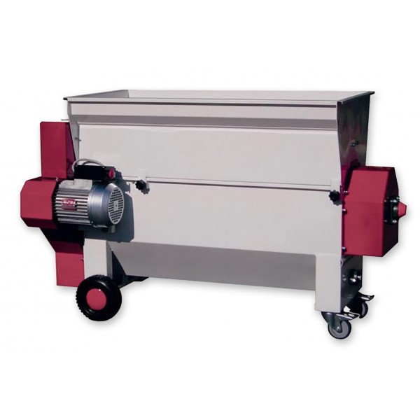 Despalilladora lacada modelo BETA equipada con una bomba centrífuga para la transferencia de la pasta hacia el interior del depósito de fermentación.