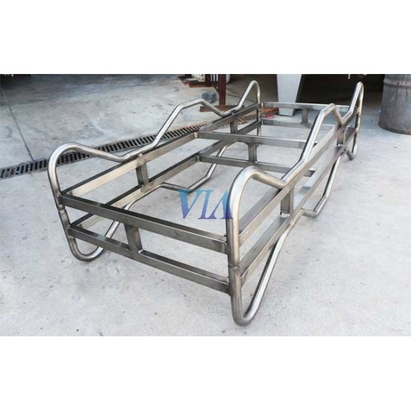 Soportes ACERO INOXIDABLE gran robustez para apilar convenientemente las barricas en la bodega. Dos barricas por durmiente. Para barricas de 225 lts ó 300 lts.