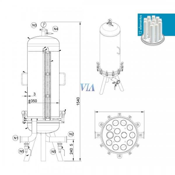 Sistema de filtración basado en campanas de acero inoxidable de diferentes capacidades y tamaños.