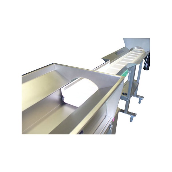 Mesa de selección en acero inoxidable AISI 304, plano de selección de 2500 mm accionada mediante un motor con tansmisión de tornillo de 1 HP de velocidad variable (independiente del variador de la despalilladora) . Completamente extraible de la máquina  gracias al bastidor con ruedas.