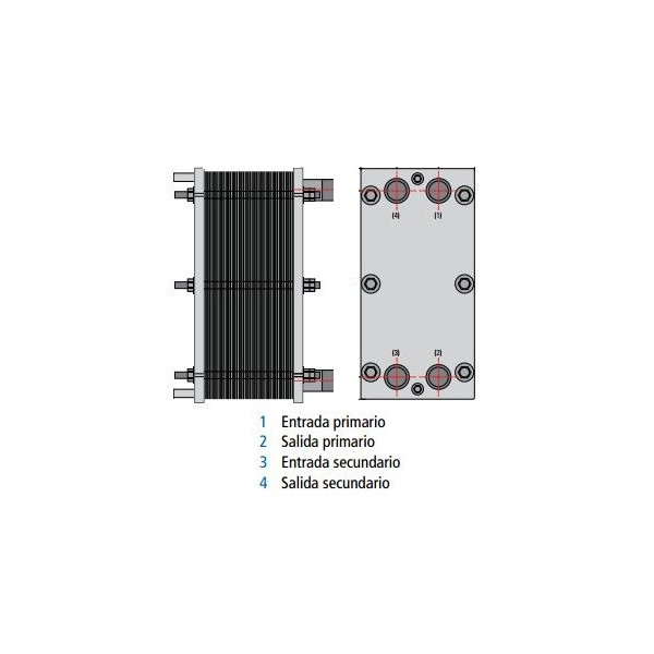 Fabricación a medida en función de las temperaturas de entrada / salida y caudal de los fluidos que circularán por los dos circuitos que lo componen.