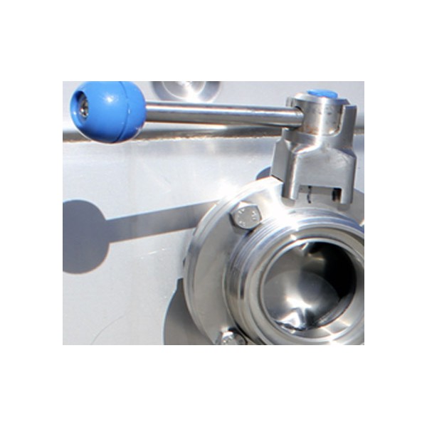 *Parte inferior: Fondo plano inclinado 5% con pendiente hacia la parte frontal para facilitar el desvinado y la extracción de los hollejos. Salida del vaciado total al lado de la boca inferior en el fondo válvula mariposa inox 304 salida macho NW 50.