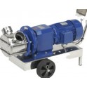 Pompe auto-amorçante réversible, corps en acier inoxydable, roue flexible en caoutchouc ou en nitrile. Moteur triphasé, monté sur chariot en acier inoxydable (inclus). Principe de fonctionnement En faisant tourner la roue, le produit est transporté de la bouche d'aspiration à la bouche de livraison et également en...