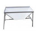 Chevalet laqué pour couplage dans la partie inférieure des broyeurs - égrappoirs. Cela permet de guider la sortie de la pâte à travers une trémie vers un bol inférieur. CaractéristiquesMesures 810 x 360 mm. Hauteur 600 mm.
