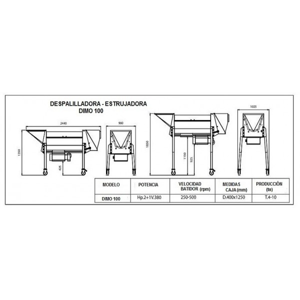 Il se distingue par le traitement doux du produit, facile à utiliser, facile à démonter et à nettoyer. Equipement configurable, s'adapte facilement à différents types de réception du raisin, que ce soit à l'aide de moyens mécaniques ou manuellement.