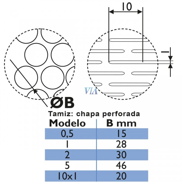 Tamis avec foret circulaire (Ø 0,5 mm à Ø 5 mm) ou foret longitudinal (10 x 1 mm).