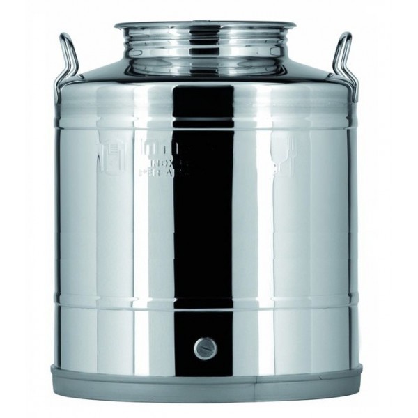 Cantaras en acier inoxydable 18/10 avec couvercle fileté en acier inoxydable de 200 mm, fond plat, soudé.