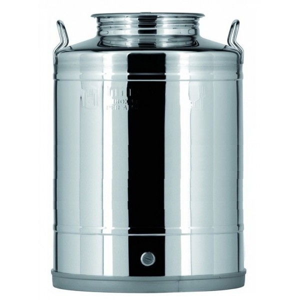 Cantaras en acier inoxydable 18/10 avec couvercle fileté en acier inoxydable de 200 mm, fond plat, soudé.