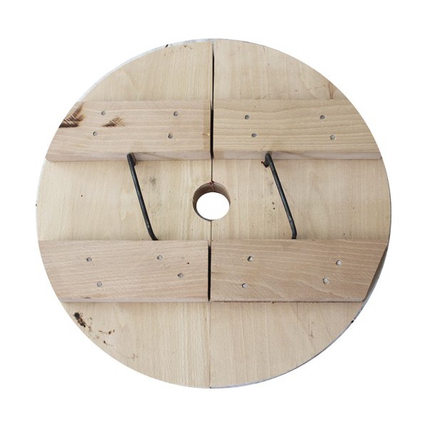 Pressoir verticale avec cage en bois résistant, fixation par boulons et base peinte.