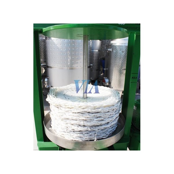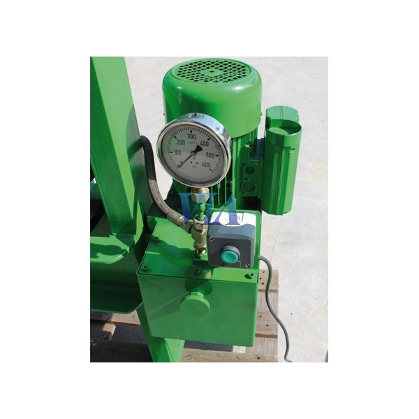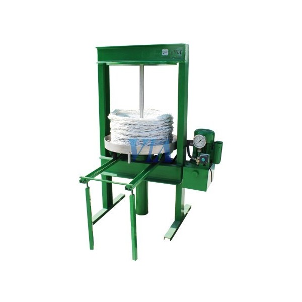 Presse hydraulique motorisée pour pressage à froid. Dans ce type de pressage, le processus dure entre 4 et 5 heures jusqu'à l'obtention de l'huile d'olive.